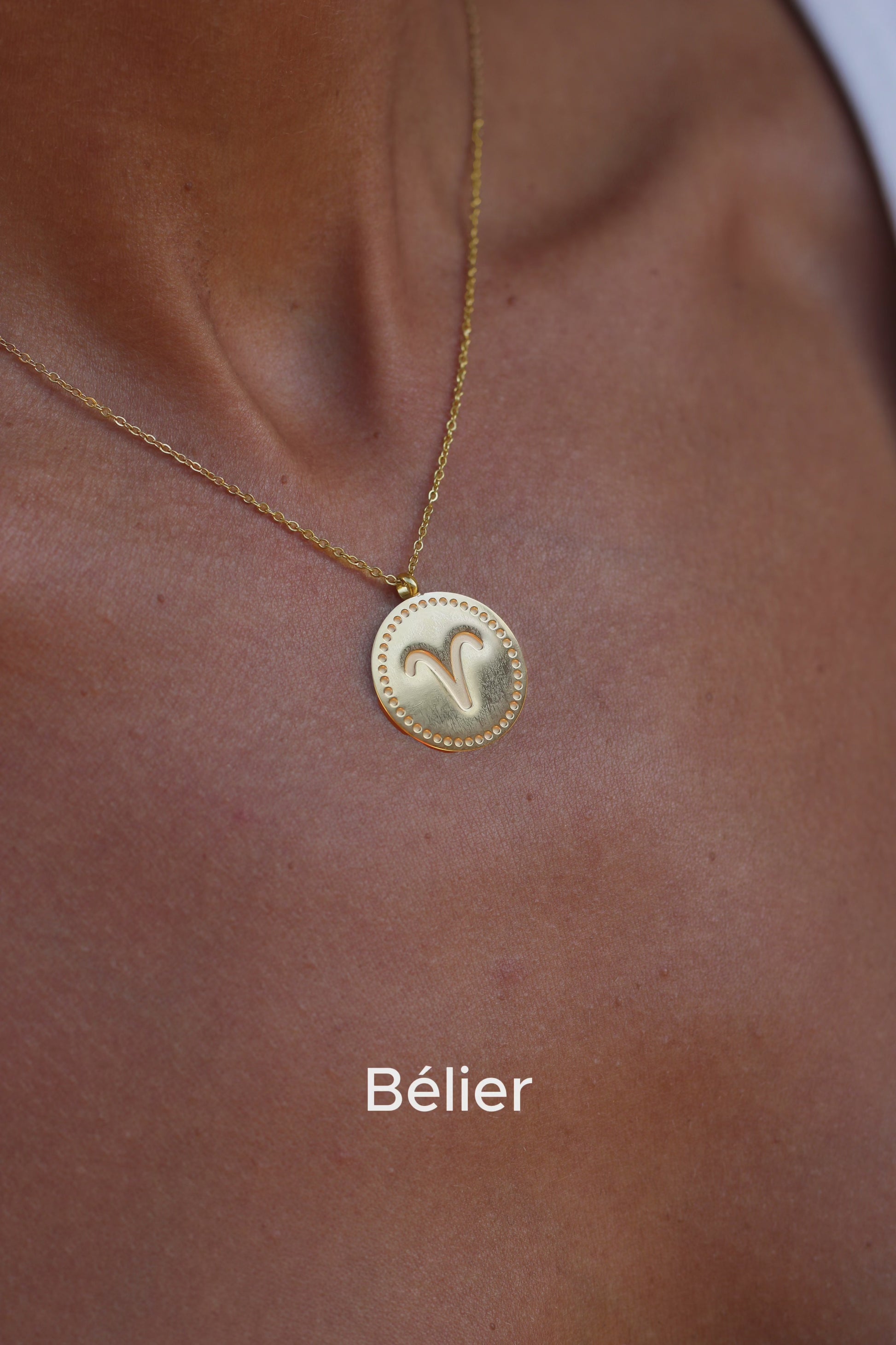 Détails du collier (mixte) : chaîne acier inoxydable 40–45 cm, poids 38 g, médaillon 85 × 110 × 20 mm.